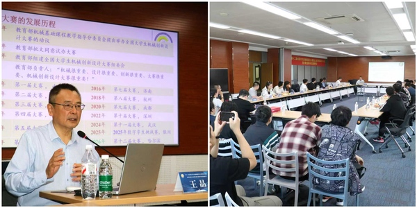 全国大学生机械创新设计大赛组委会委员、大赛秘书长王晶教授介绍了机械创新设计大赛的成果及近年来的新变化、新趋势,并对第十二届大赛的主题和内容做了深度解析。在互动交流环节,现场师生结合备赛过程中遇到的问题进行提问,王晶教授逐一耐心解答,现场氛围热烈。
